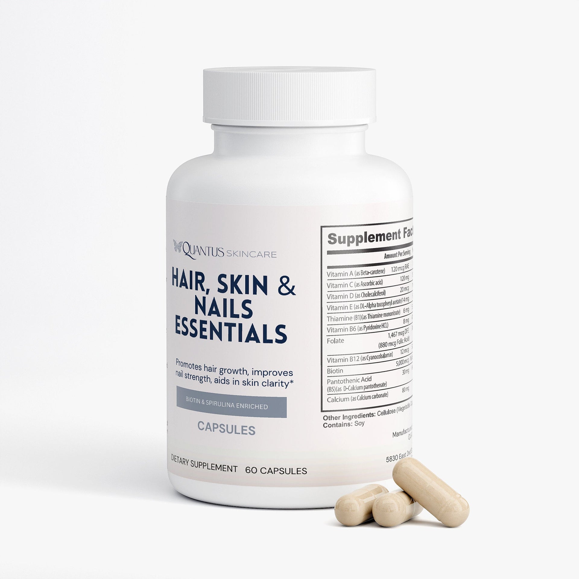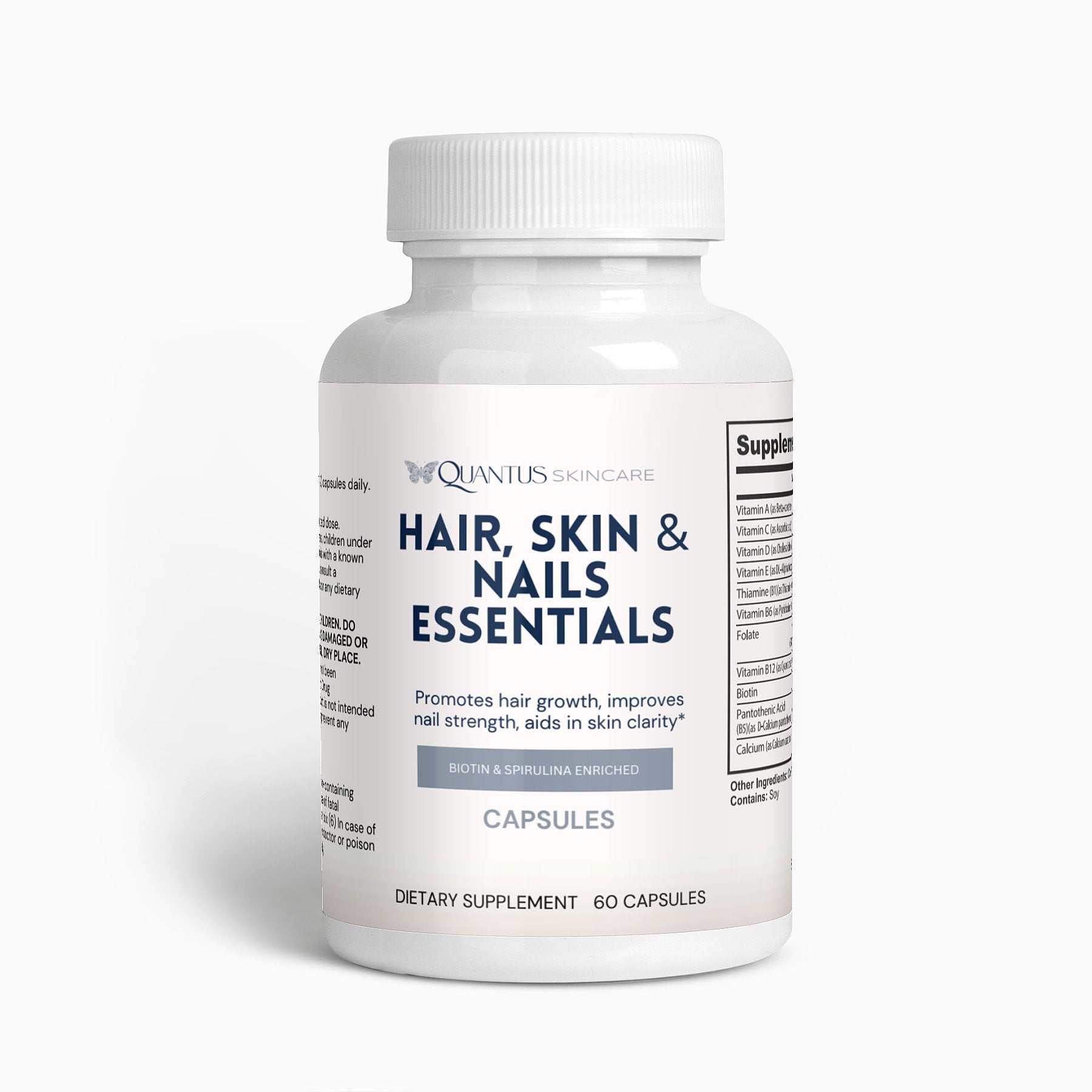 Our Hair, Skin, and Nails Essentials supplement is made to give you that natural glow. In combination, Vitamin B6, Folate, and Biotin work together to maintain elastin in the hair, skin, and nails. Elastin is a major component of body tissues, helping them function correctly.