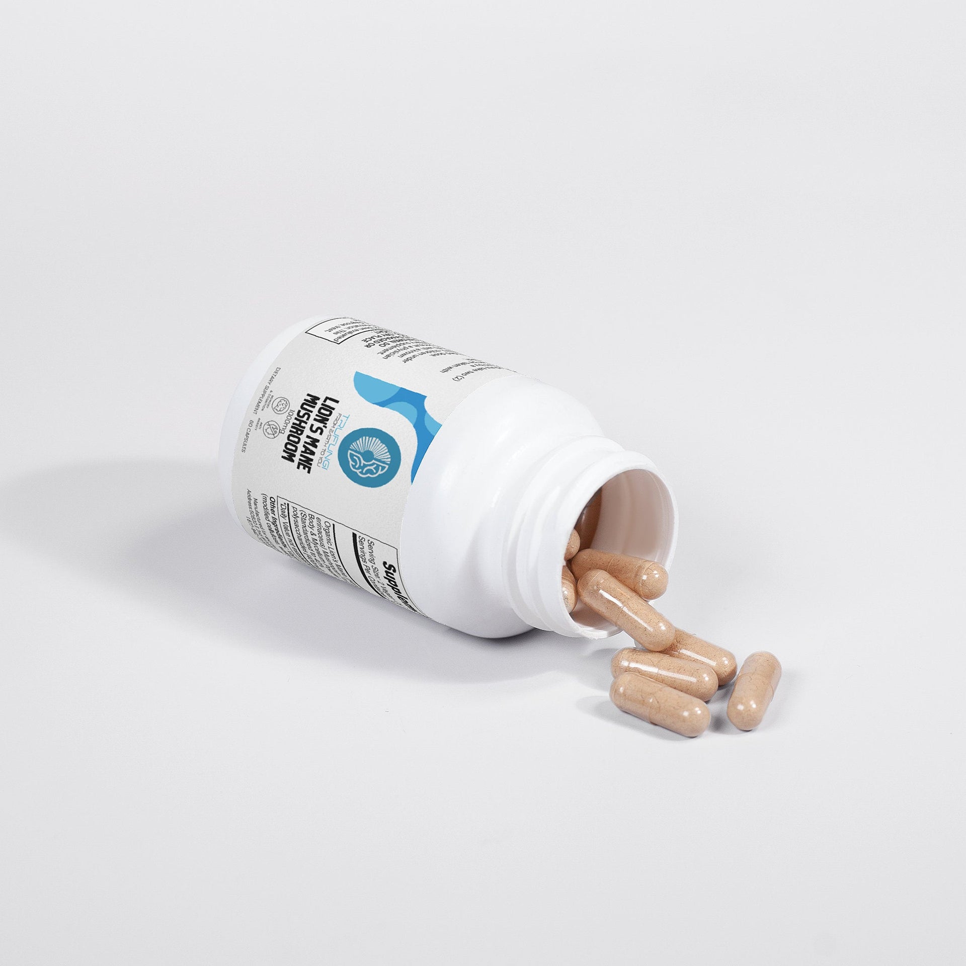 Ingredients: Organic Lion’s Mane (Hericum erinaceus) Mushroom Fruiting Body & Mycelium Powder (Standardized to 40% polysaccharides [400mg]), Vegan Capsule (modified cellulose, water).